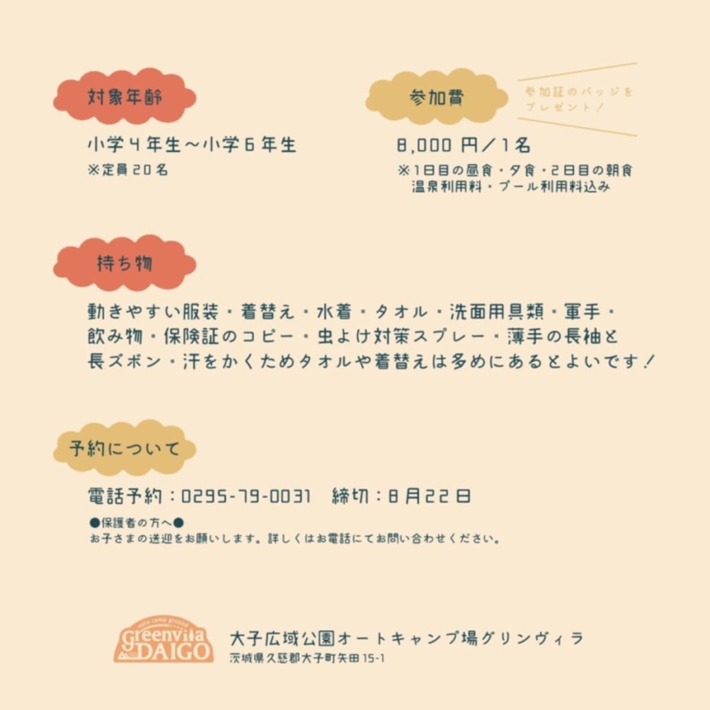 小学4〜6年生を対象にした宿泊キャンプを開催することが決定しました。